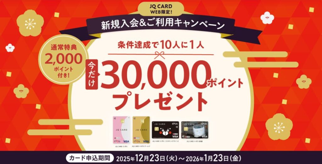 一定の時間を要しますが最高還元でJQカードエポスゴールドを作る方法は下記の通りです。