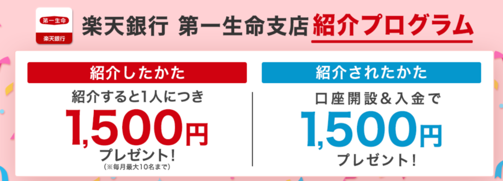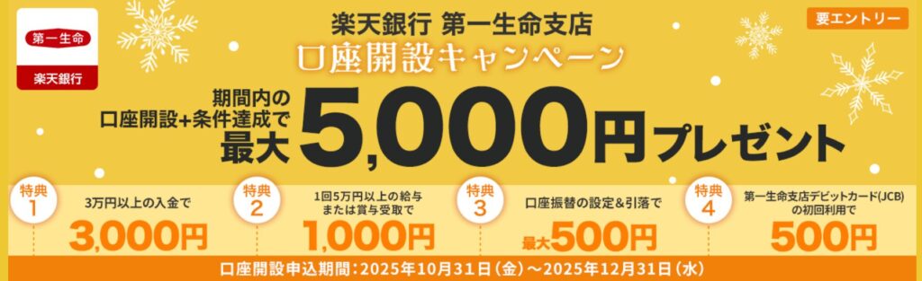 本記事では楽天銀行第一生命支店の新規口座開設キャンペーンを解説します。