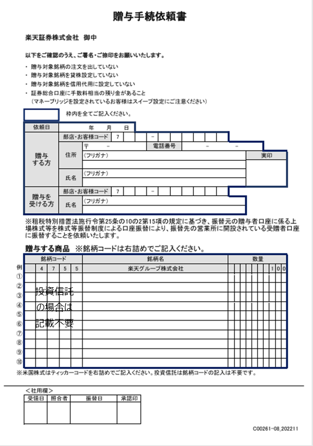 本記事では楽天証券で保有する親権者の投資信託を子供へ贈与する方法をご紹介します。