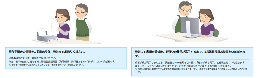 我が家の贈与手続は贈与依頼書郵送後5営業日ほどで完了しました。
