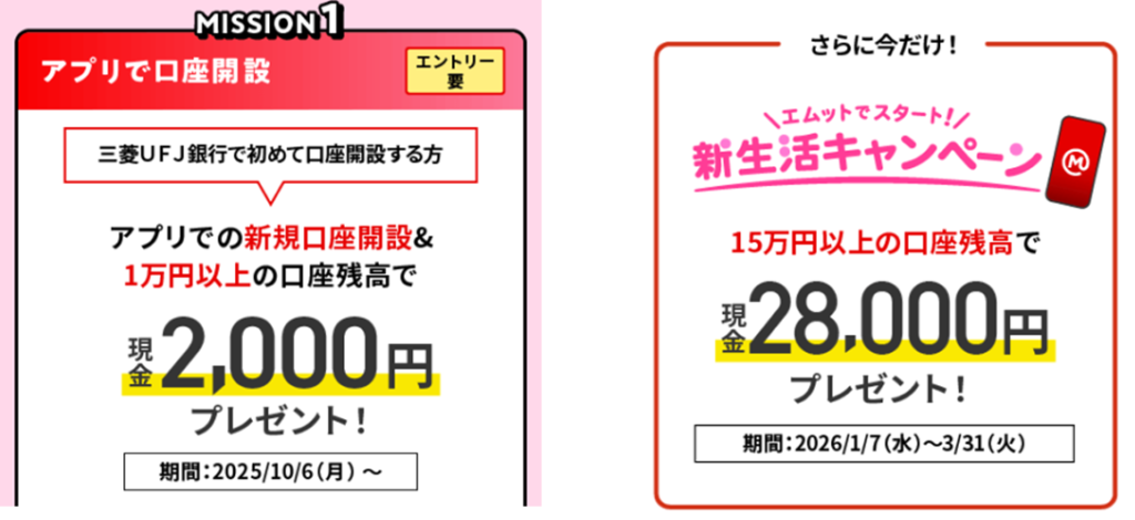 本記事では三菱UFJ銀行を新規開設キャンペーンをまとめています。